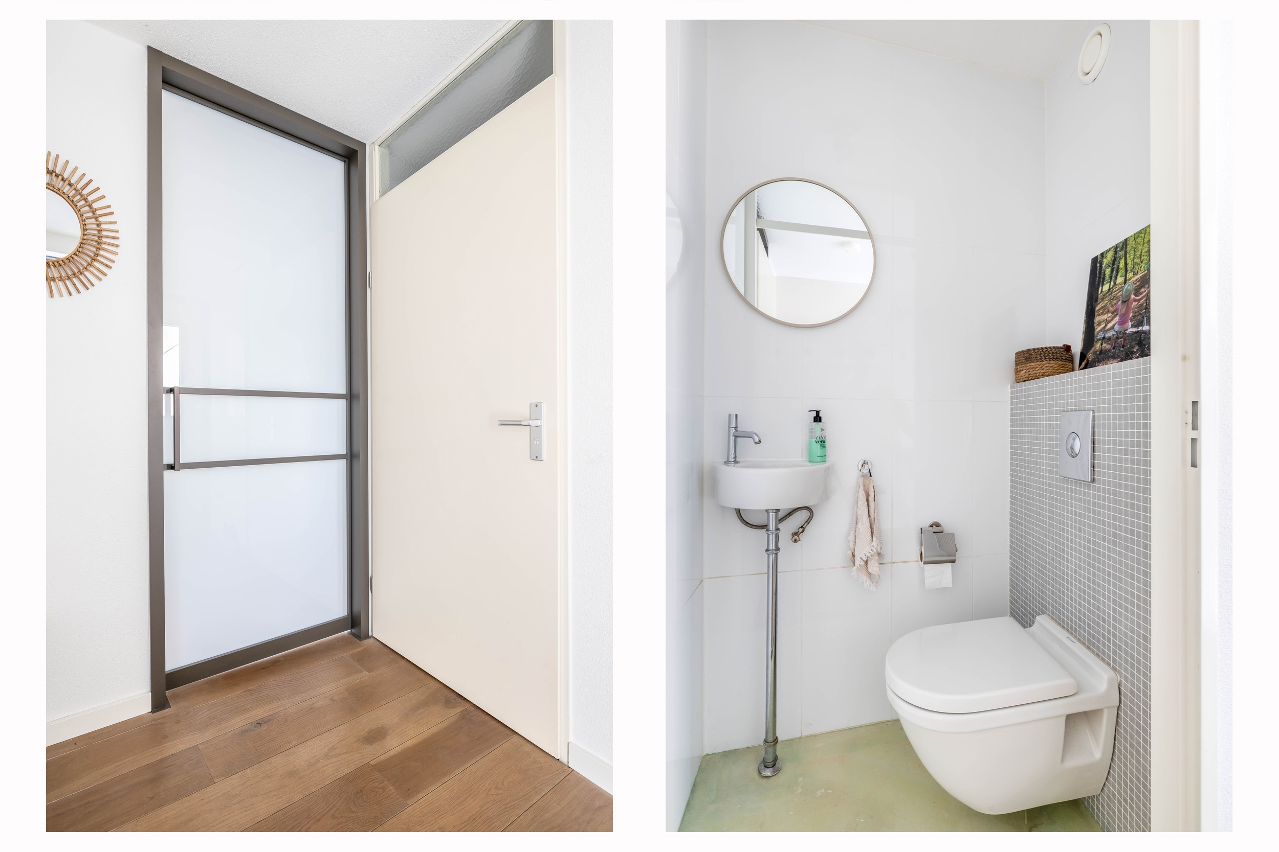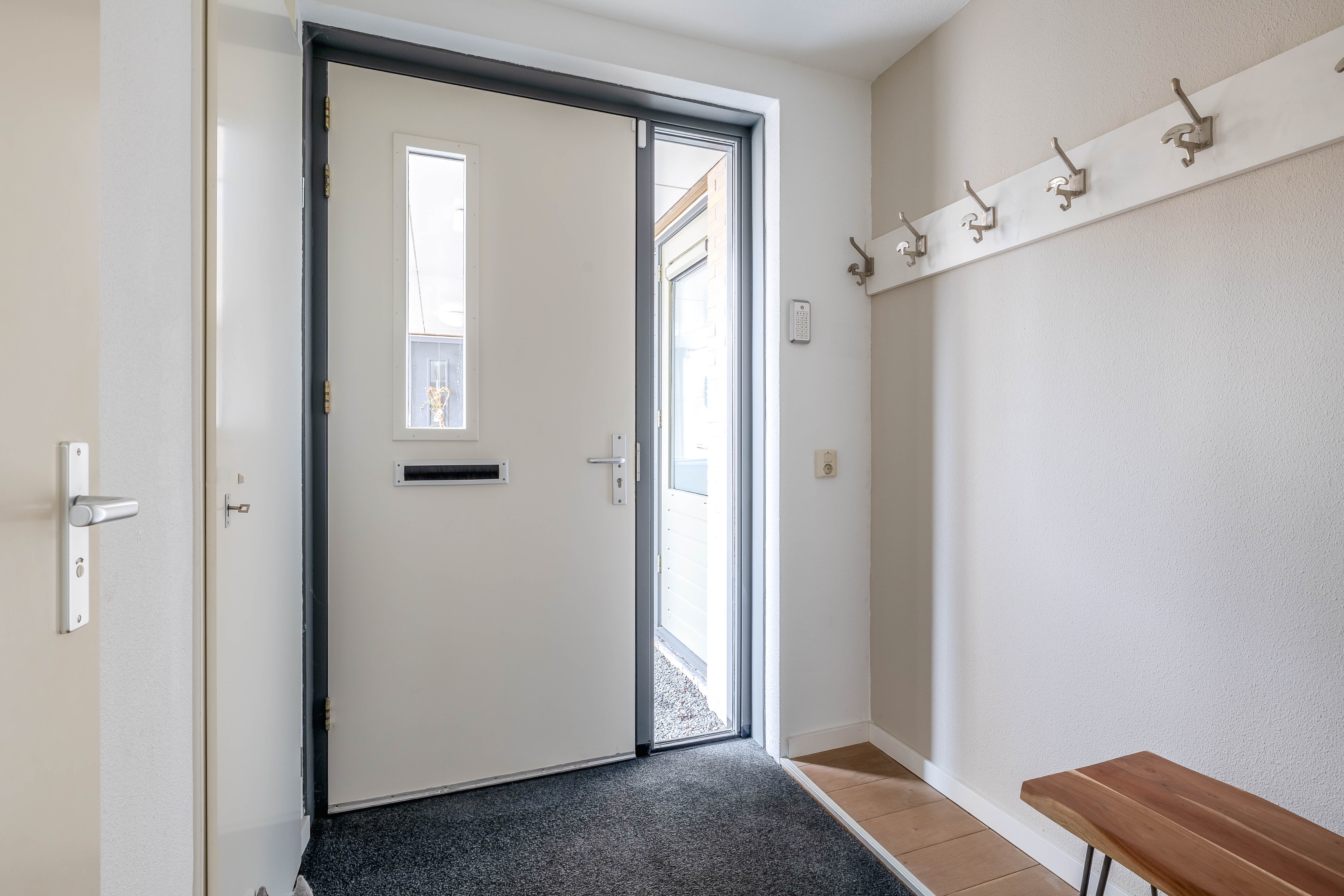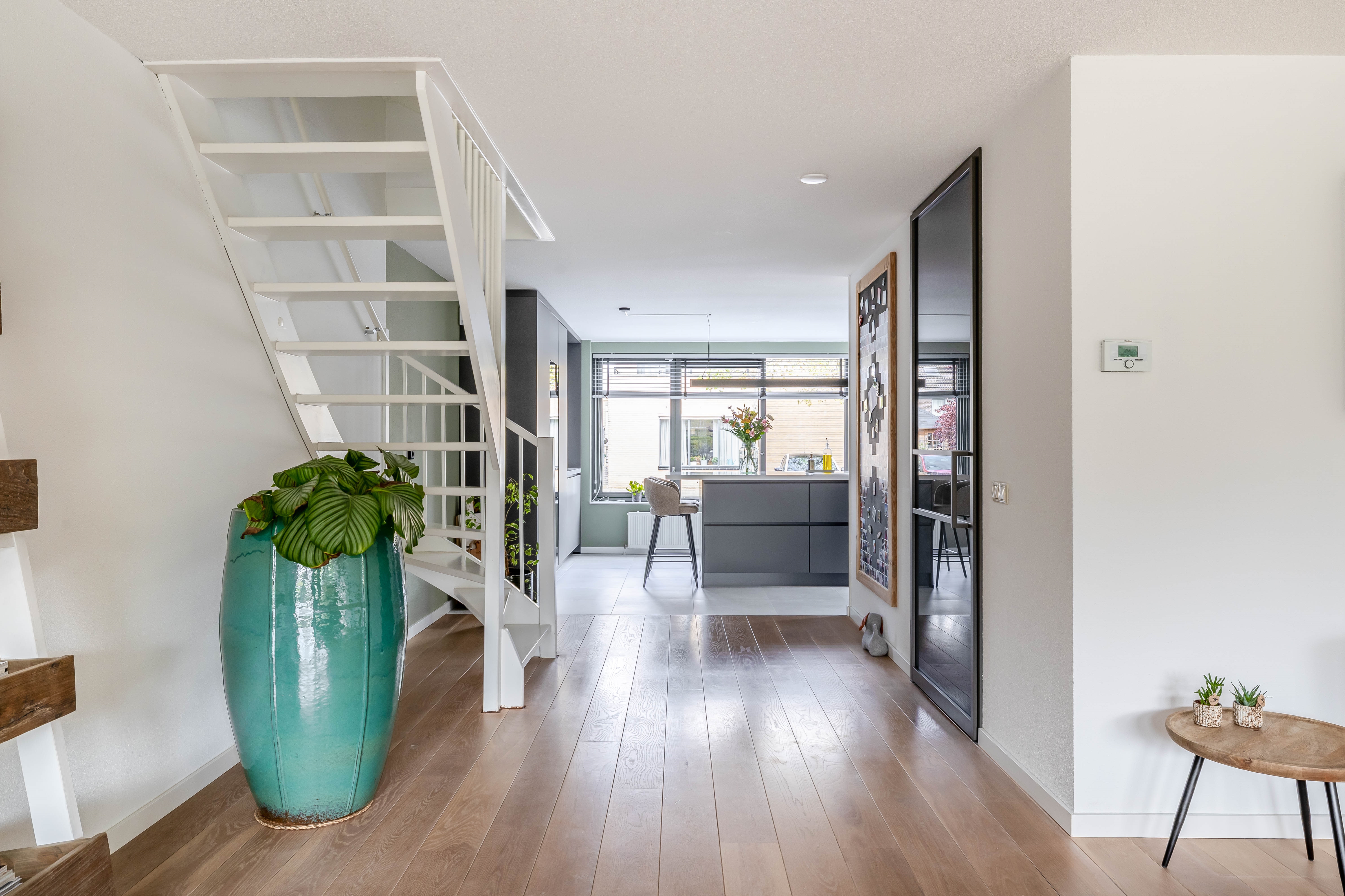 - Stalen deur geplaatst tussen hal en woonkamer;