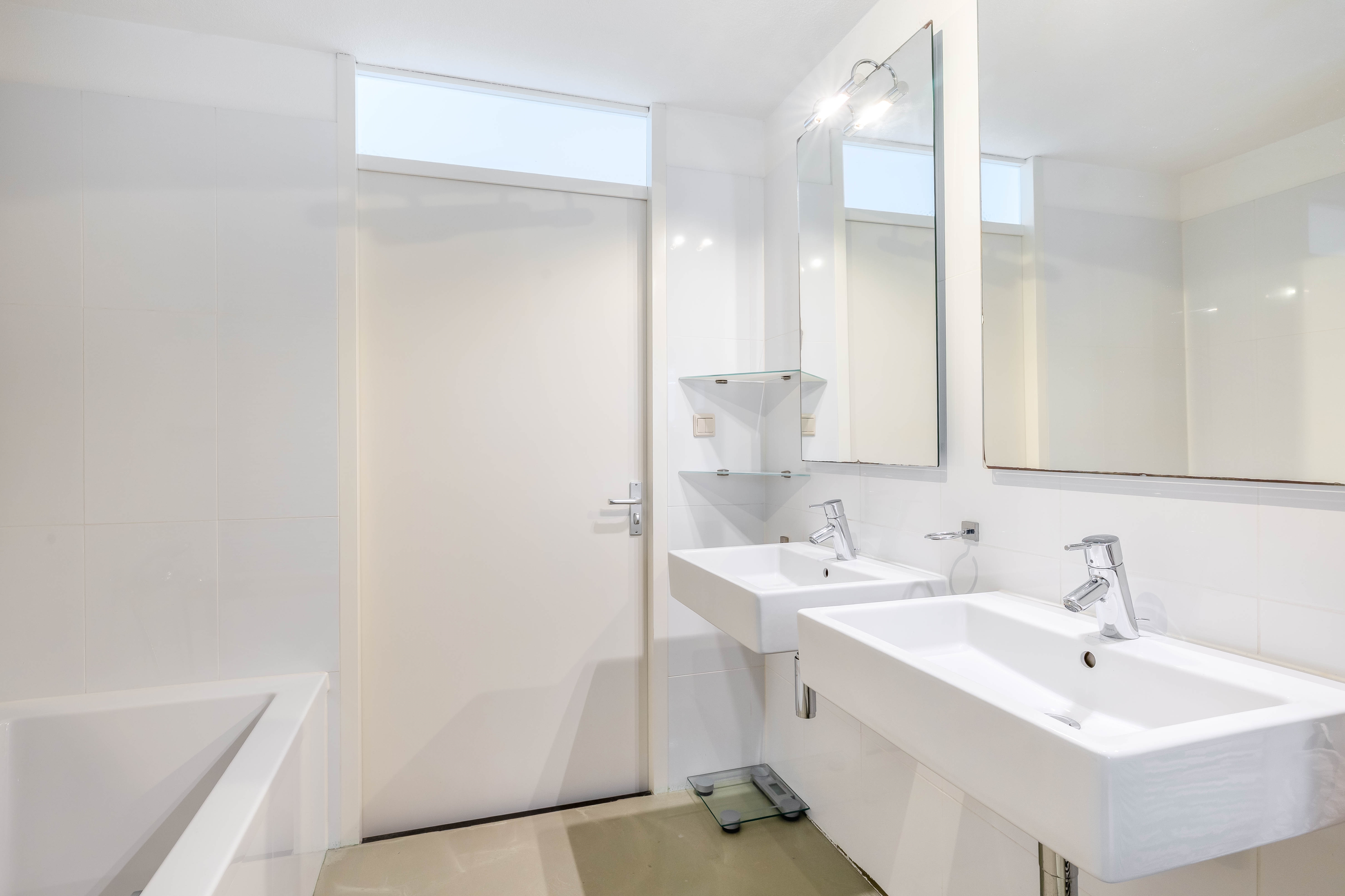 Op de eerste verdieping vind je drie ruime slaapkamers, waaronder een fijne master bedroom met balkon. Ook is hier de eerste badkamer, voorzien van ligbad, inloopdouche, dubbele wastafel en toilet. De badkamer is netjes en neutraal afgewerkt.