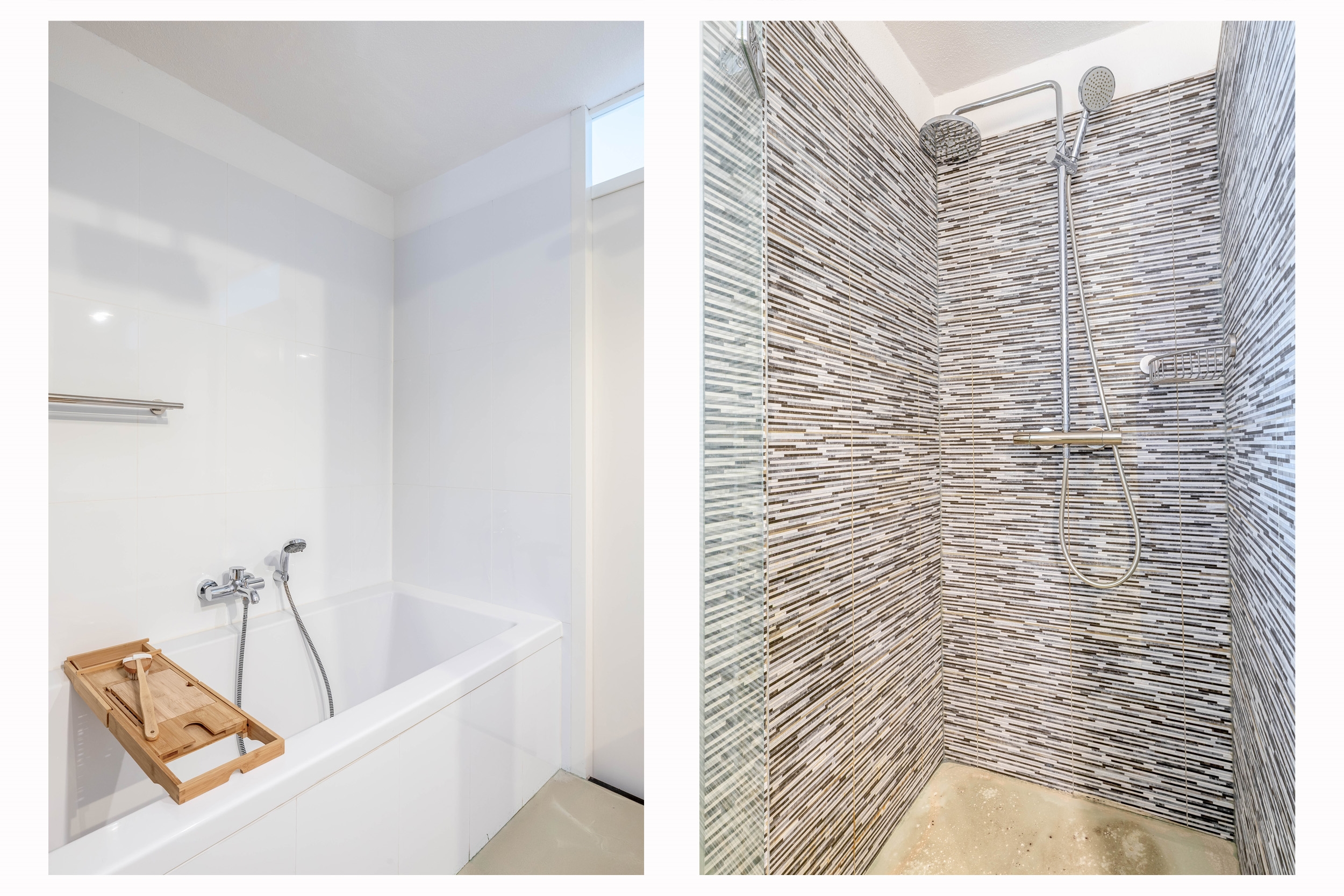 De tweede verdieping is echt een verrassing: hier is in 2024 een prachtige studio gecreëerd met twee slaap-/leefruimtes en een eigen tweede badkamer. Deze badkamer heeft ook een luxe en hippe uitstraling en is voorzien van een douche, wastafel, toilet, elektrische vloerverwarming en de opstelplaats voor de wasmachine. De etage is door de twee dakkapellen heerlijk ruim en licht, beide dakkapellen zijn voorzien van ingebouwde airconditioning, shutters en zonnescherm.