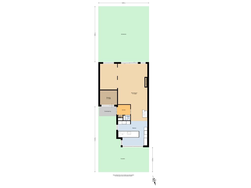 Voor de afmetingen en indeling, zie de plattegrond.